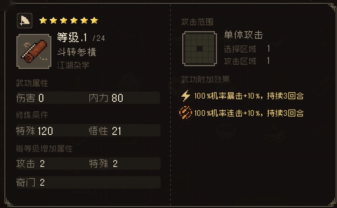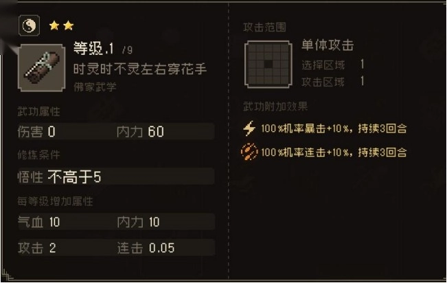 中冲一指 指力伤害+10,内力+5%,连击+5%