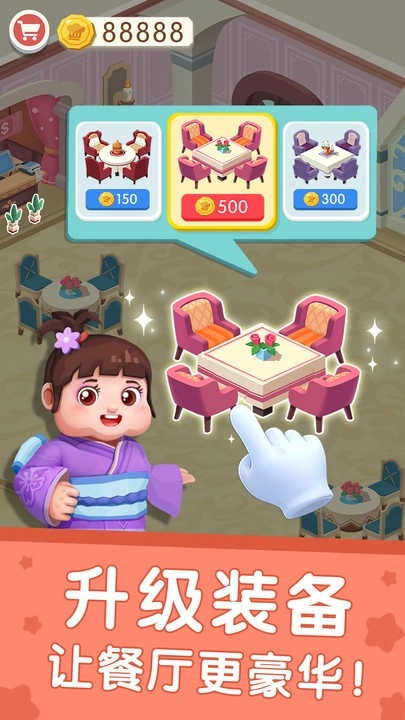 -- Q版画风可爱无比,放置元素轻松上手,提升餐厅的规模,才能让生意更好