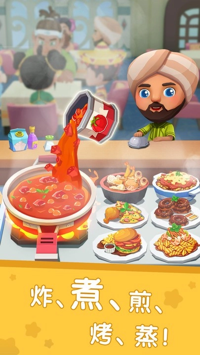 经营餐厅,积累财富,获取建设餐厅的材料道具,解锁全新国际特色餐厅。