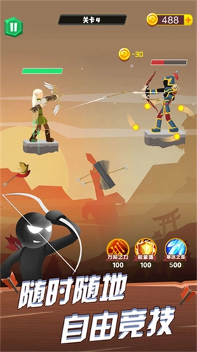 火柴人弓箭手是一款轻松有趣的休闲射击游戏,拥有多种关卡,每个关卡都对应着特定的射击任务。玩家只需用弓箭完成任务就能通关,随着关卡推进,难度会逐渐增加,玩家将遇到更多强劲对手,体验竞技闯关的刺激。游戏里还有多种不同的弓箭可供选择,每把弓箭都有独特的属性加成,能在闯关时发挥更大作用,玩起来绝对不会让你失望。