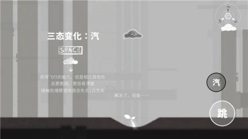 1、主角作为一个小水滴,分别为水、冰、汽,每个形态都有自己的特性。
