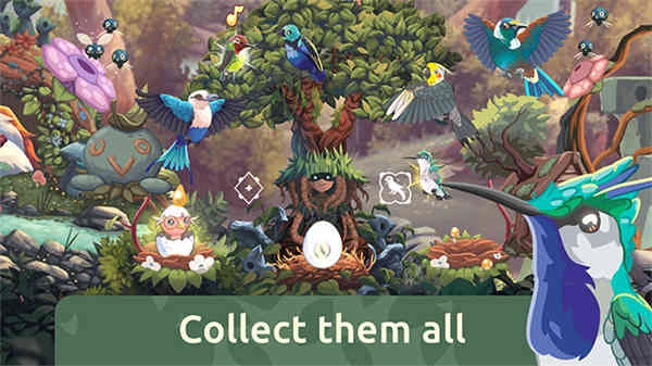 通过点击黄色物品,可以帮助小鸟加速成长。随着鸟儿的成长,你将解锁更多种类的鸟类,并逐步建设一个丰富多彩的生态系统。