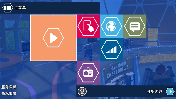 1、游戏主界面功能清晰,左侧橙色按钮为开始游戏键。你可以在此设置语言、字幕、音效与控制方式。