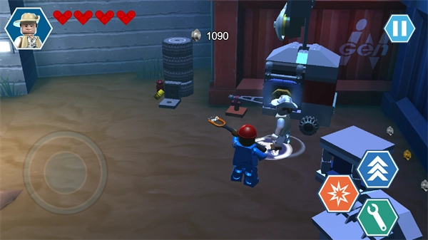 4、左侧摇杆控制角色移动,右侧按钮分别为跳跃、破坏和修理,用于闯关和解谜。