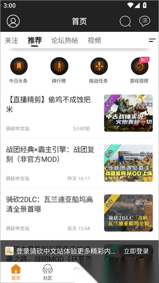 1.界面采用简洁清晰的设计风格,便于用户浏览各类专栏内容,从而挑选获取骑砍游戏的相关知识。