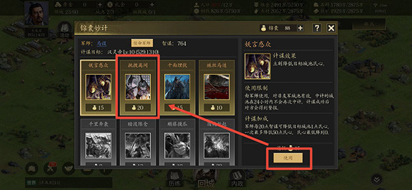 2、在攻占前用智谋最高的将领对城池使用“挑拨离间”降低将领的忠诚度。
