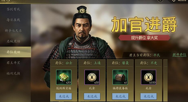 6、爵位奖励,达到指定的爵位就可以开启宝箱了