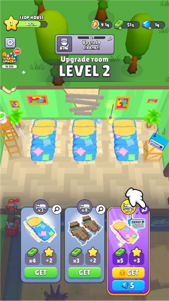 4.点击下方的床铺升级来增加救济站的设施。