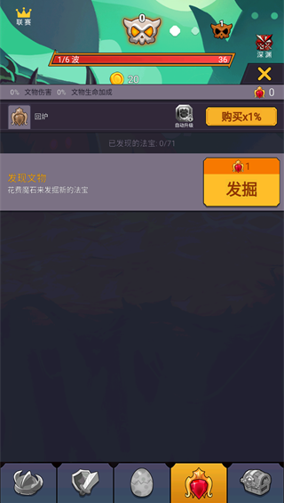4、隐遁: 玩家可通过舍弃当前层数来获取魔石、装备、金币等资源,同时还能随时随地上传或读取存档。
