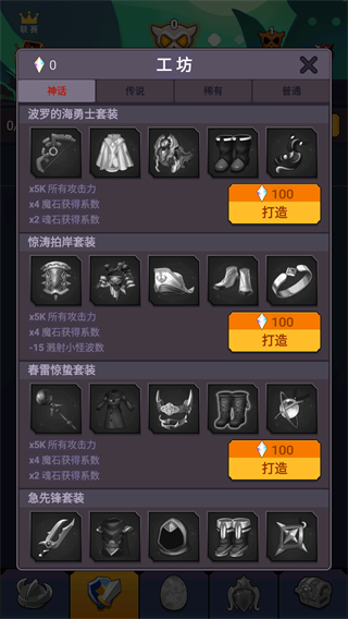 2、装备: 装备穿戴后能对所有英雄的属性产生效果,装备可通过击败怪物获取,每日获取数量设有最高上限;
