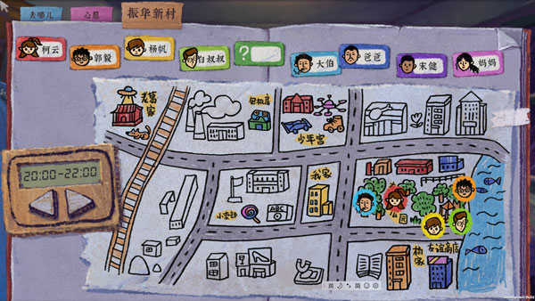 地图把人物与时间段相互关联,每个时间段对应的地点和人物都能在地图上查看。随着游戏进程的逐步推进,地图会慢慢被补全,神秘振华新村的全貌也会渐渐展现在你眼前。