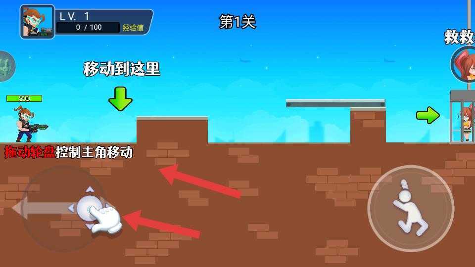 2、第1关场景里,拖动轮盘控制主角移动,按照提示移动到指定位置,同时留意周围环境,为后续行动做准备。