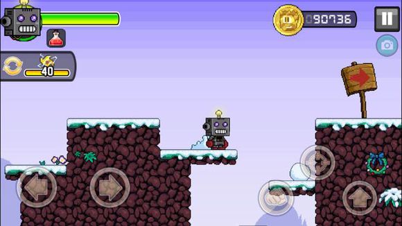 4、等待一会加载,游戏内左边两个按钮控制角色左右,右边则为攻击和跳跃键;