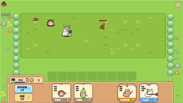 游戏开始时,玩家会直接获得五个金币并达到三级,这些金币可用于购买随机刷新的猫猫角色。