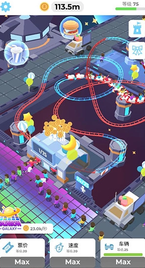 闲置过山车中文版是一款休闲模拟类游戏,此次为大家带来的是它的最新版本,这个版本是当前游戏的最新迭代,能让玩家收获更畅快的游戏体验。游戏采用清新简洁的卡通画风,搭配高清逼真的过山车造型,还有紧张中带着欢快的背景音乐,玩家可以在这里沉浸式感受经营过山车游乐园的乐趣。
