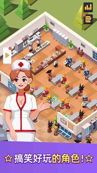 5、以轻松放置为主题的经营游戏,经营自己的医院,招聘了很多员工。