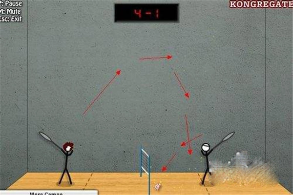 两边火柴人身后的墙壁能让羽毛球弹回——玩家成功回击的话看似没什么不同,但这会把对手逼到非常好的位置,球一旦打到墙上基本就能得分咯~!