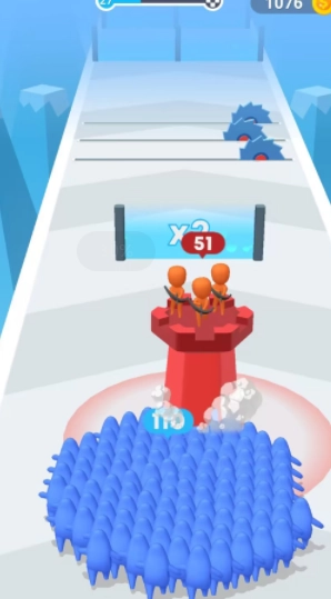 1、控制你的小人去一路狂奔,收集一路上的小人,扩大你的人群提升实力。