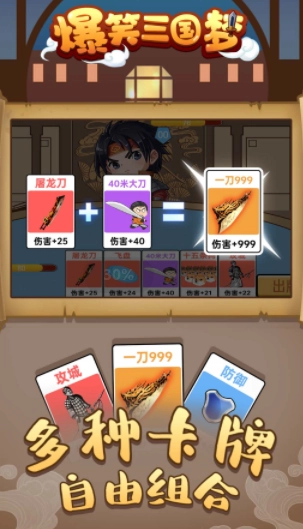爆笑三国梦,一款合成卡牌大战游戏。游戏中玩家将合成你的卡牌,随时上桌来一把,更多的魔性卡牌抽取,合成升级搭配出战,对抗你的对手吧,非常精彩。