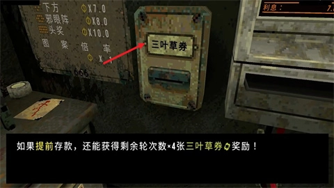 4、使用三叶草券可购买幸运符,以此提升生存几率。此外,当玩家在ATM存入足够数量的所需硬币后,商店将自动刷新免费商品。