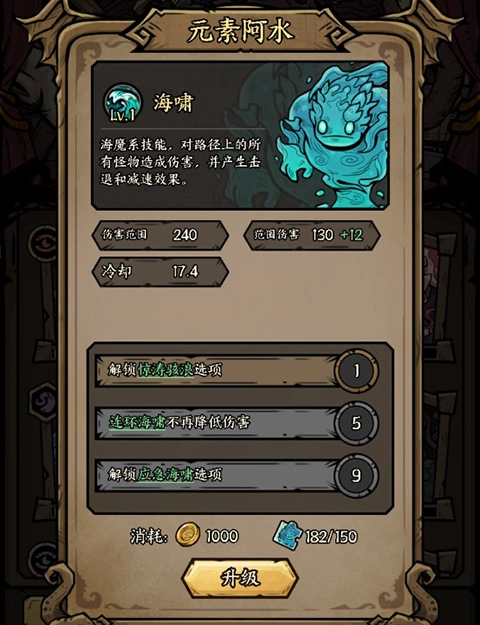 水元素精灵拥有召唤海啸的能力,既能击退敌人,又能对其造成伤害;升级之后,它不仅能带来额外的伤害,还能提升自身的速度。