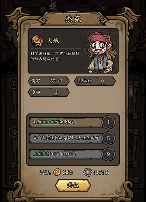 该武器类型为火炮,主要针对单个目标作战;其技能支持升级,升级后可增加炮弹发射数量与攻击伤害。
