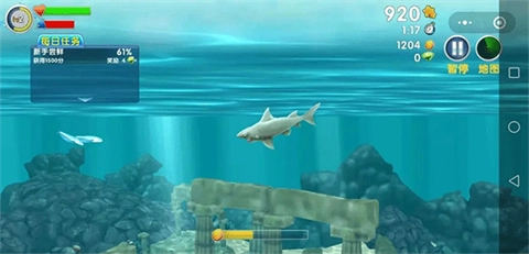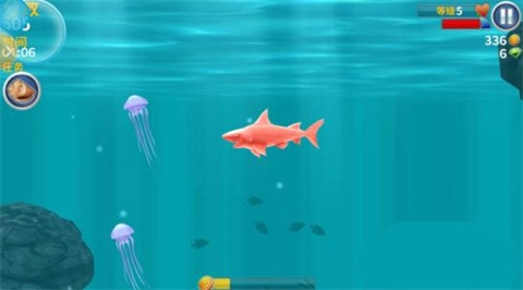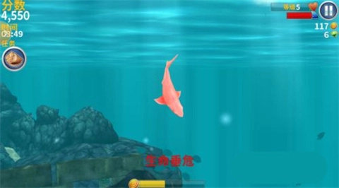 2、游戏前期鲨鱼能捕捉的食物种类比较少,建议先确认当前鲨鱼可捕食的对象,尽量减少受伤,还可以准备一些解毒剂和防弹衣——解毒剂能防御水母的伤害,防弹衣则可以抵挡炸弹造成的伤害。