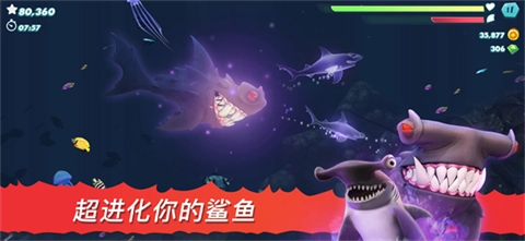 饥饿鲨进化正版是一款快节奏的大鱼吃小鱼冒险游戏。在游戏里,你将化身鲨鱼,不断吞噬体型比自己小的生物,同时躲避那些极具威胁的强大鱼类。通过一步步积累,提升自身实力,与其他鲨鱼、潜水艇以及更多千奇百怪的深海生物展开战斗,争取获得更高分数,最终成为海洋中的霸主。