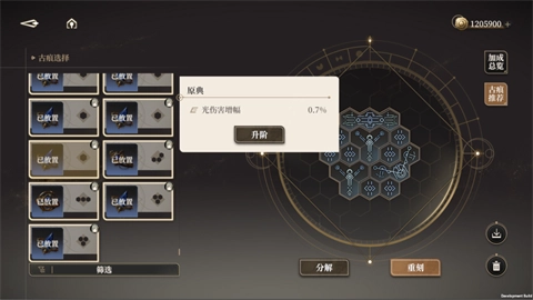 4、古痕生成时会附带1条随机属性,玩家可选择同名古痕进行合并操作(最多合并2次),合并后的古痕还能通过反向拆解来调整属性。