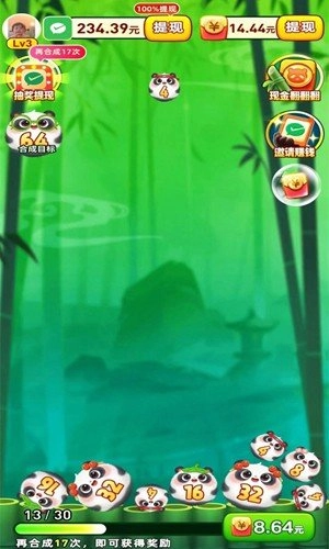 发发熊猫正版是一款画风超萌超有趣的数字合成闯关类手机游戏!游戏里会出现各种不同的数字,大家可以直接进行合成操作,玩起来真的特别有意思,让人根本停不下来!在发发熊猫红包版中,玩家需要把相同数字的方块合并,直到合成出2048这个数字方块就算完成游戏任务,就能领取红包奖励,而且合成的2048越多,能拿到的红包奖励也会更丰厚,感兴趣的朋友们赶紧来试试吧!