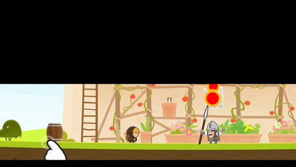 2、第一关的任务是从沉睡的士兵身旁取走果篮,操作很简单:只需点击屏幕就能操控游戏人物移动,当人物移动到可交互的物品附近时,会触发对应的动作提示。