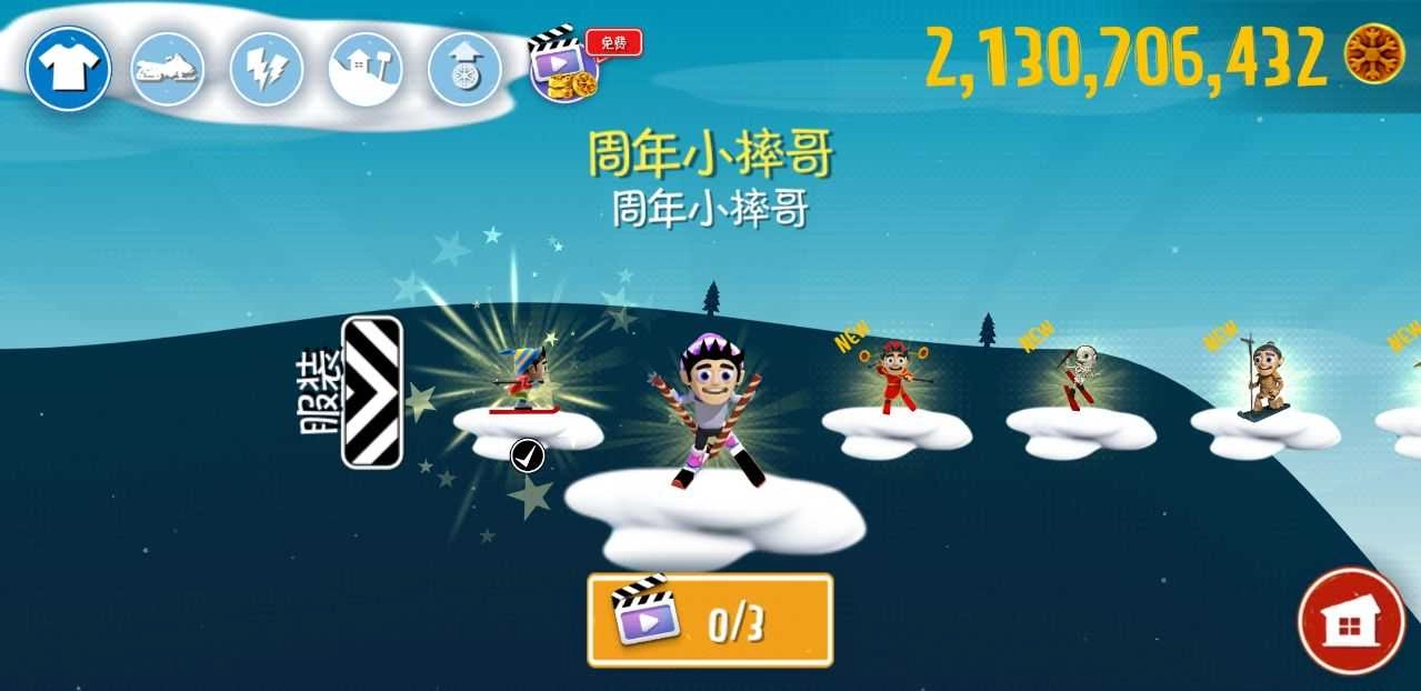 3.滑雪时,可以使用各种环境场景。各种动物和道具可以帮助你跑得更远。