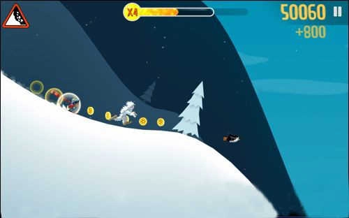 2. 无尽的滑雪挑战,身后的雪崩总会给你一种非常紧张和刺激的感觉。