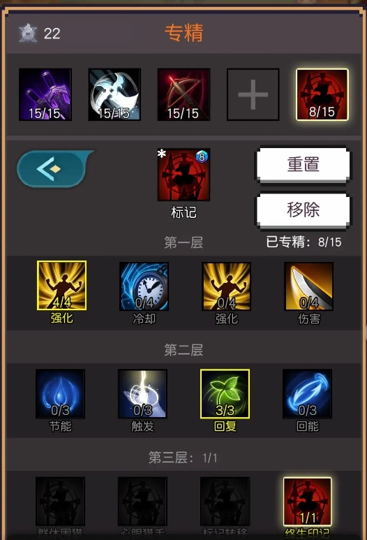 1、首先要明确辅助技能标记,这是我们从前期到后期都不可或缺的技能,续航能力非常出色。