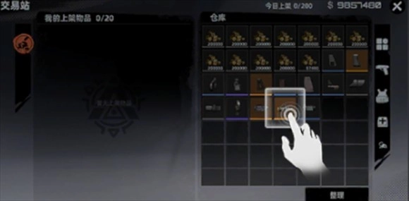 5、玩家还可通过仓库内的物品出售按钮,将物品直接上架寄售。