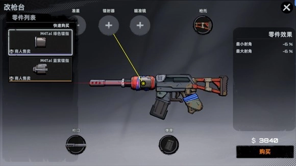 2、镭射器:提升站立射击时的准确度,增强对敌人的命中率。