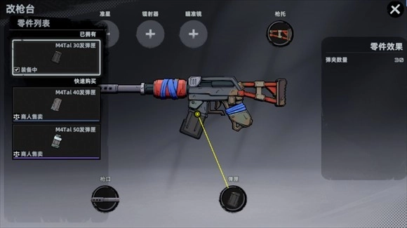 5、弹匣:增加枪械的弹夹容量,延长射击时间,减少换弹频率。