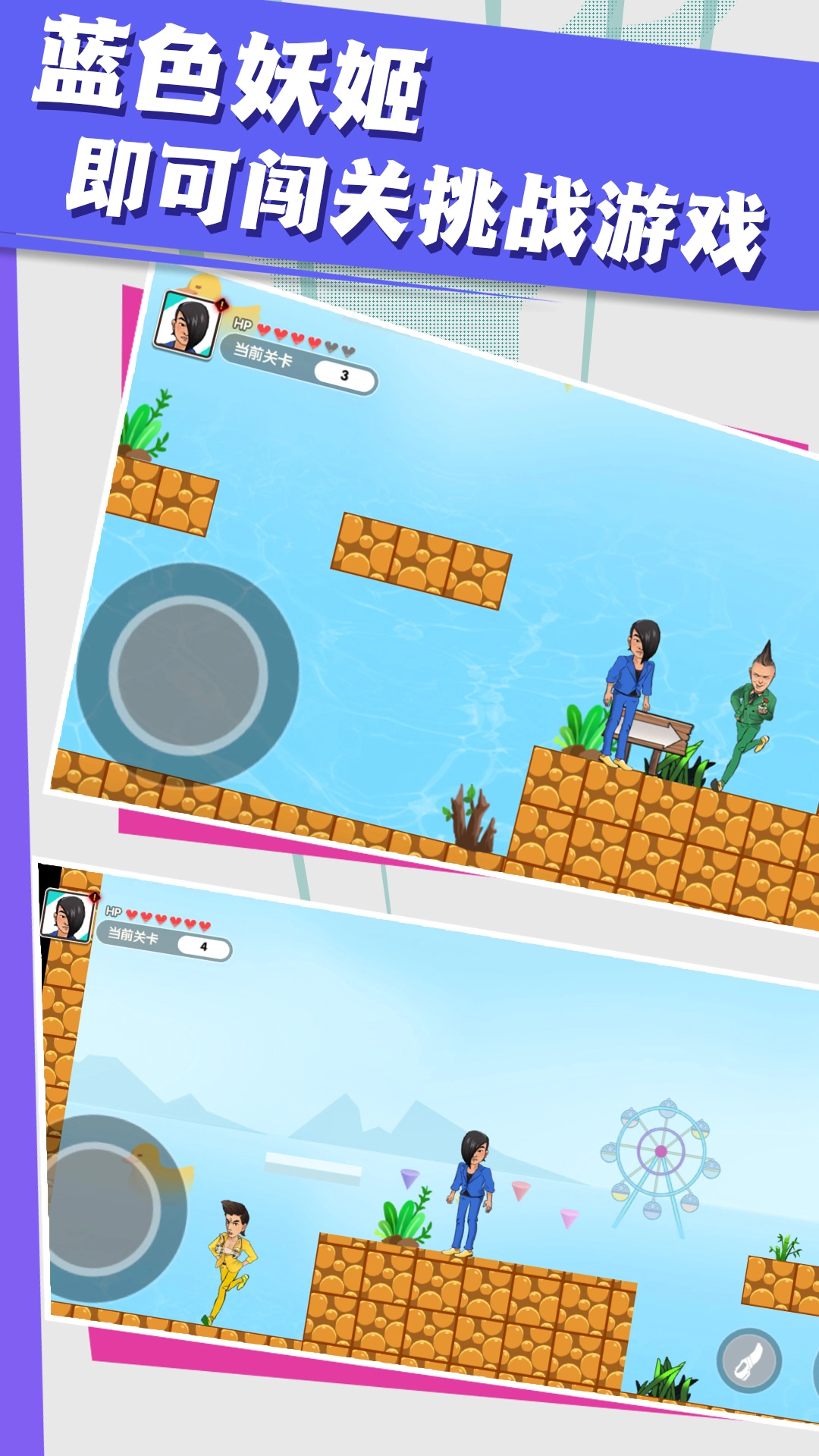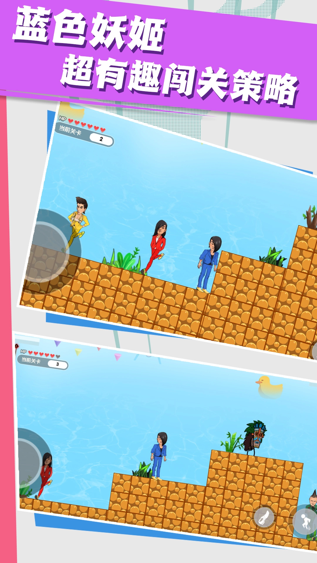 1、玩家操控蓝色妖姬为代表的角色,在精心设计的平台关卡中展开冒险之旅。