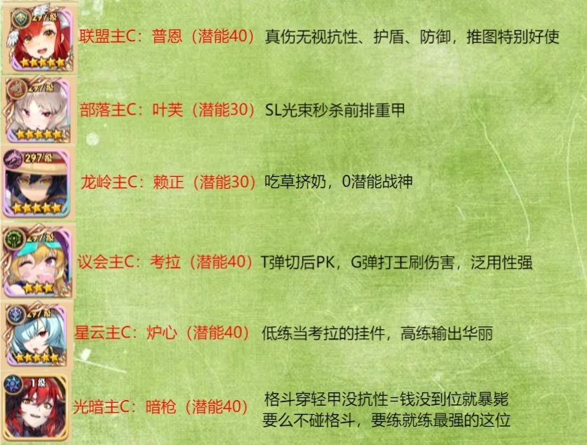 10各阵营值得培养的角色介绍