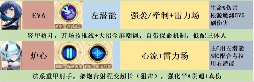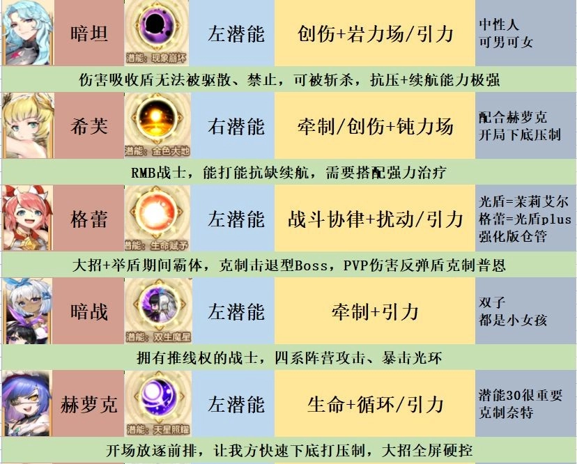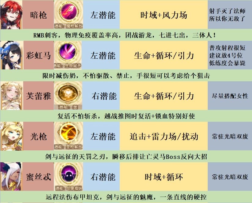 通过潜能类型,筛选出各阵营的强力输出