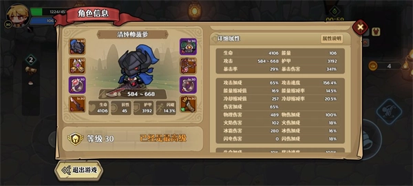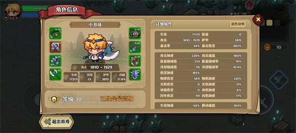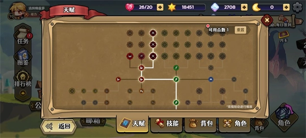 我们5w的伤害打难度8应该没什么问题,选这里刷星星继续升级就行,天赋先把那几个20敏捷点上,暴击爆伤这些看着点也没关系,反正到30级转战士要重置天赋的。(其实可以先通了战役再来刷这个升级,等级高了打起来更轻松,不过我是老手就直接刷这个升级,不通战役了。)