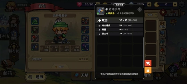 阶段一:从1级到10级.我们就跟着关卡走,记得准备一个武器叫做手弩,并且点出天赋武器大师,其他装备选择敏捷。属性加点4敏2体。