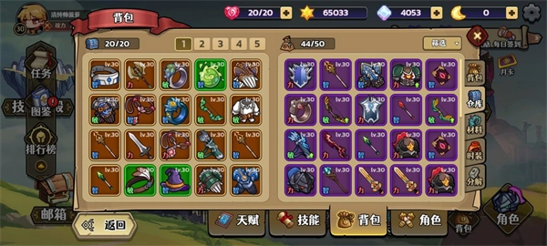 阶段四:等级区间为20到30级。这个阶段里,无尽玩法会解锁,而无尽深渊将成为我们获取装备的核心渠道。当角色达到20级时,属性会有明显提升,此时十字斩技能的伤害应该能达到8万左右,深渊的前30层应对起来会比较轻松。升级方面,我们可以选择挑战无尽深渊、刷秘境副本,或者去刷战役关卡5-6。通常打到30层时,就能积累到一些装备了,下面展示的就是我从1层到30层全程通过打深渊获得的装备。