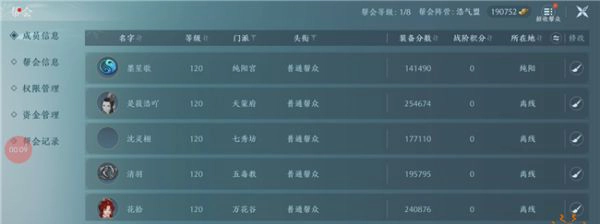 帮会管理中查看界面比较清晰,成员的信息都非常简约