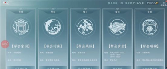 帮会的主要内容分为管理、天工树、外交、活动
