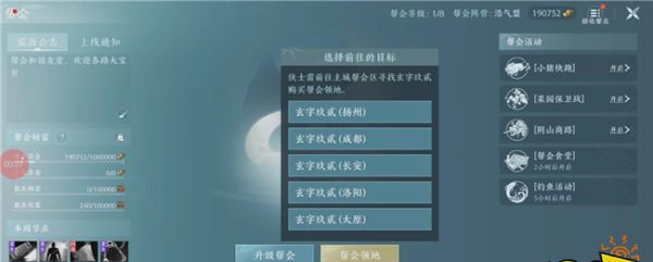 帮会的总览界面比较清晰明了,各种活动的内容和帮会情况都能直接查看时间和内容,和PC端还是有很不一样的感觉