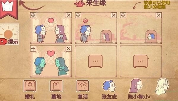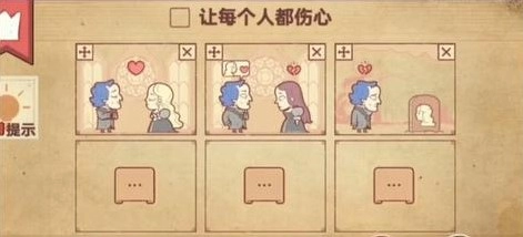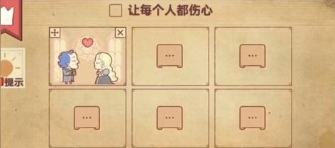 4、玩家先把婚礼放进第二个框里,接着将张友志和陈小梅也放入这个框中,两人就会心碎,具体效果可参照图示。