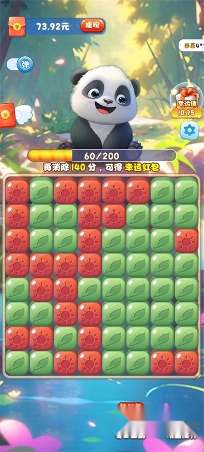 翻滚吧熊猫红包版是一款全新的红包消除游戏。新手玩家只需点击一个方格,就能快速获取淘汰分,红包奖励也会随之到手。游戏玩法并不复杂,关卡设计同样简单易懂。所有相同颜色的方块都能被消除,借助道具还能加快消除进度。感兴趣的话就来试试吧!