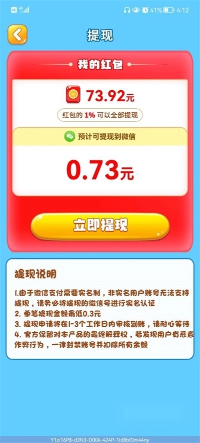 1、提现规则详尽周到,仔细了解后,定能让你轻松应对。继续探索,尽情享受游戏带来的无限乐趣。