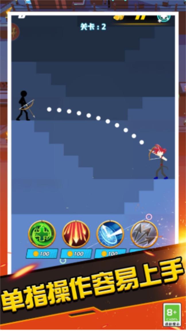 火柴人射手大作战,这是一款能开启武器展开作战的游戏。在游戏里,玩家能够操控火柴人迎接射击挑战,众多弓箭等待解锁。不仅如此,还有刺激的剧情关卡。想想看,还有什么比大家一起畅快玩耍更重要的呢?游戏拥有上百个关卡,玩家还能运用各类强大技能,去消灭更多敌人。